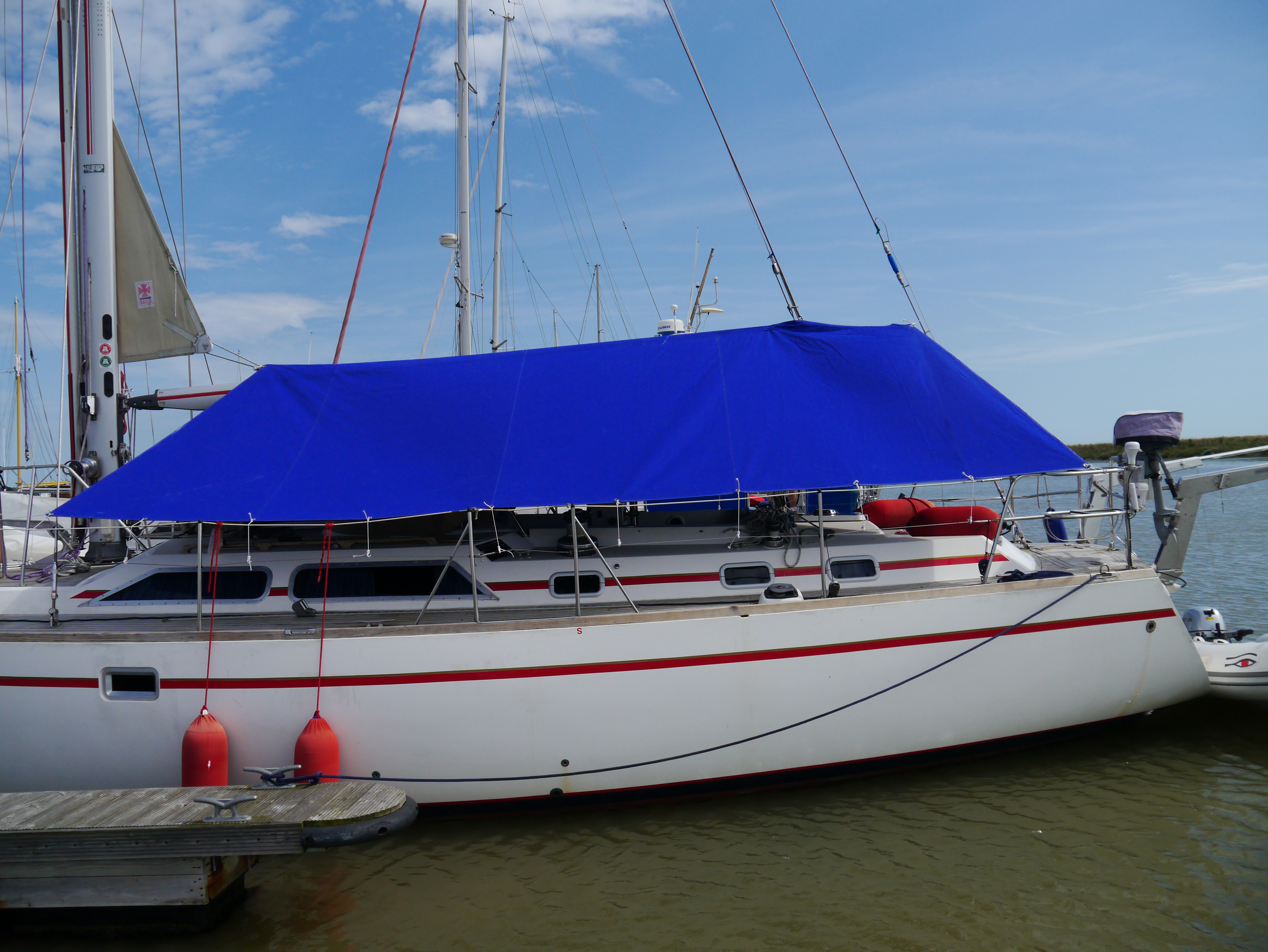 Dreaming of conditions in which we might need them, we had a new boom tent and bimini made.