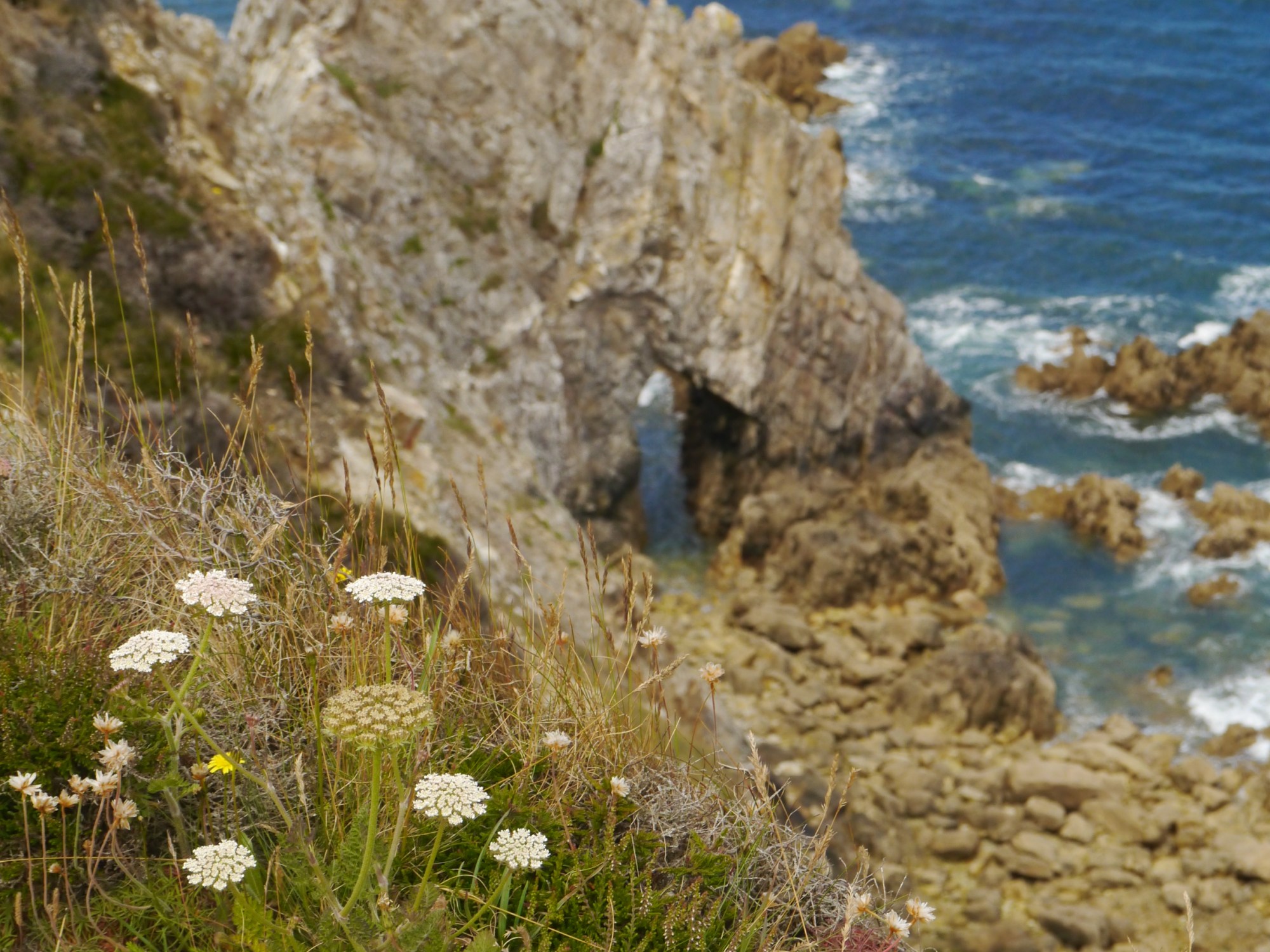 Fed up with the concrete and drizzle grey of Brest, we motored the short distance to Camaret sur Mer, a beautiful fishing village tucked into the Atlantic coast. With its rugged coastline so reminiscent of Cornwall, the entrance to the harbour was the promised maze of fish farms and we arrived in time for breakfast as the sun finally put in an appearance. Finally, an opportunity to start to dry out the contents of the boat and to start exploring.