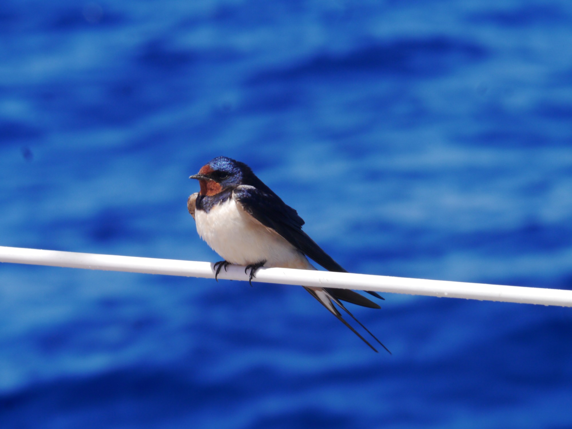 The afternoon was dominated by a visit from a migrating swallow. More than 50nm offshore it had already made a seemingly impossible flight for such a tiny bird and we were happy for it to hitch a ride for a while. It seemed exhausted. It got braver and braver in getting close to us and seemed unfazed by our presence.