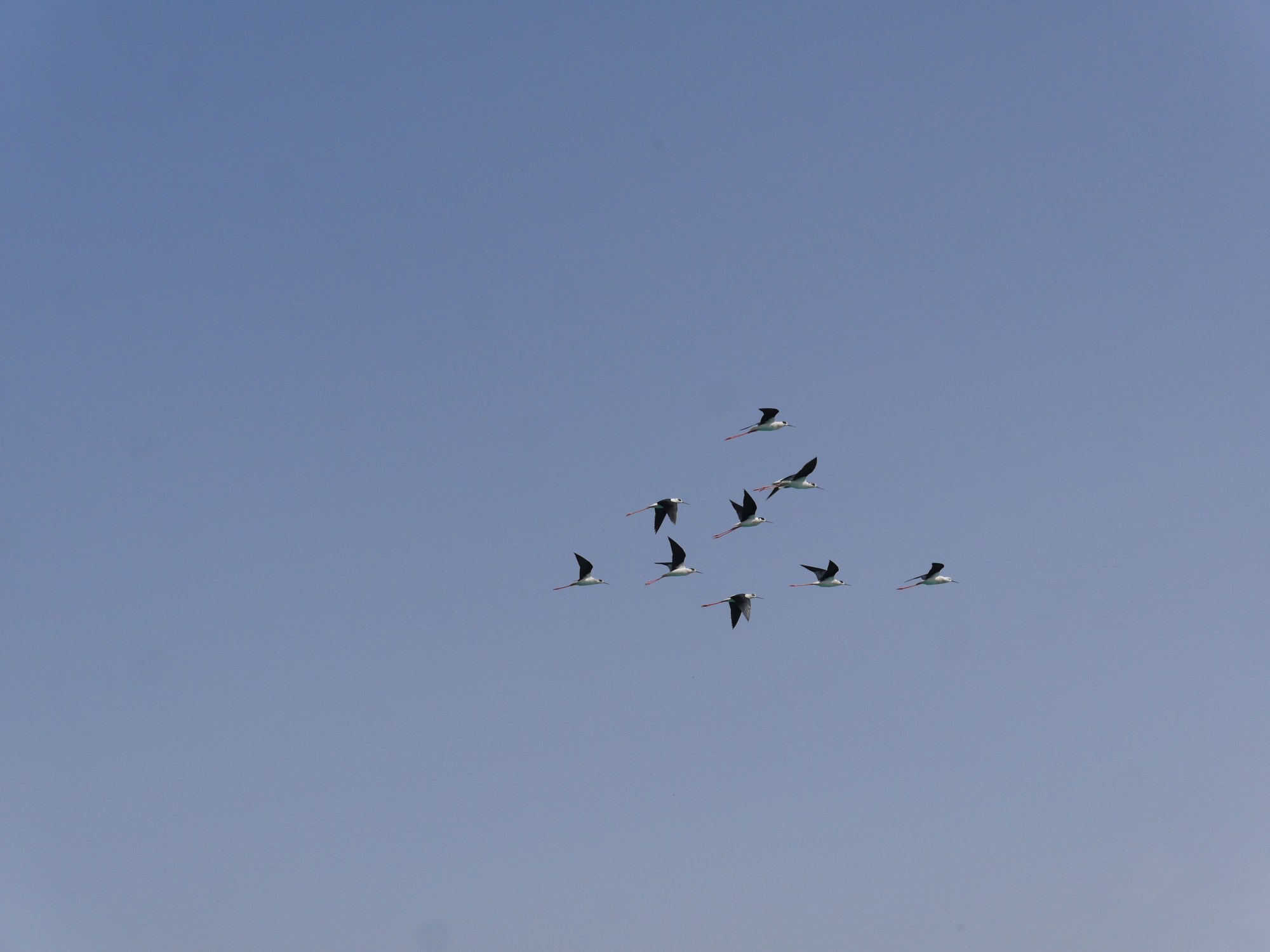 We also encountered a flock of black-winged stilts standing tall above the water. Their long pink legs became apparent when they flew, trailing far behind them. Stilts is a very good name for them.