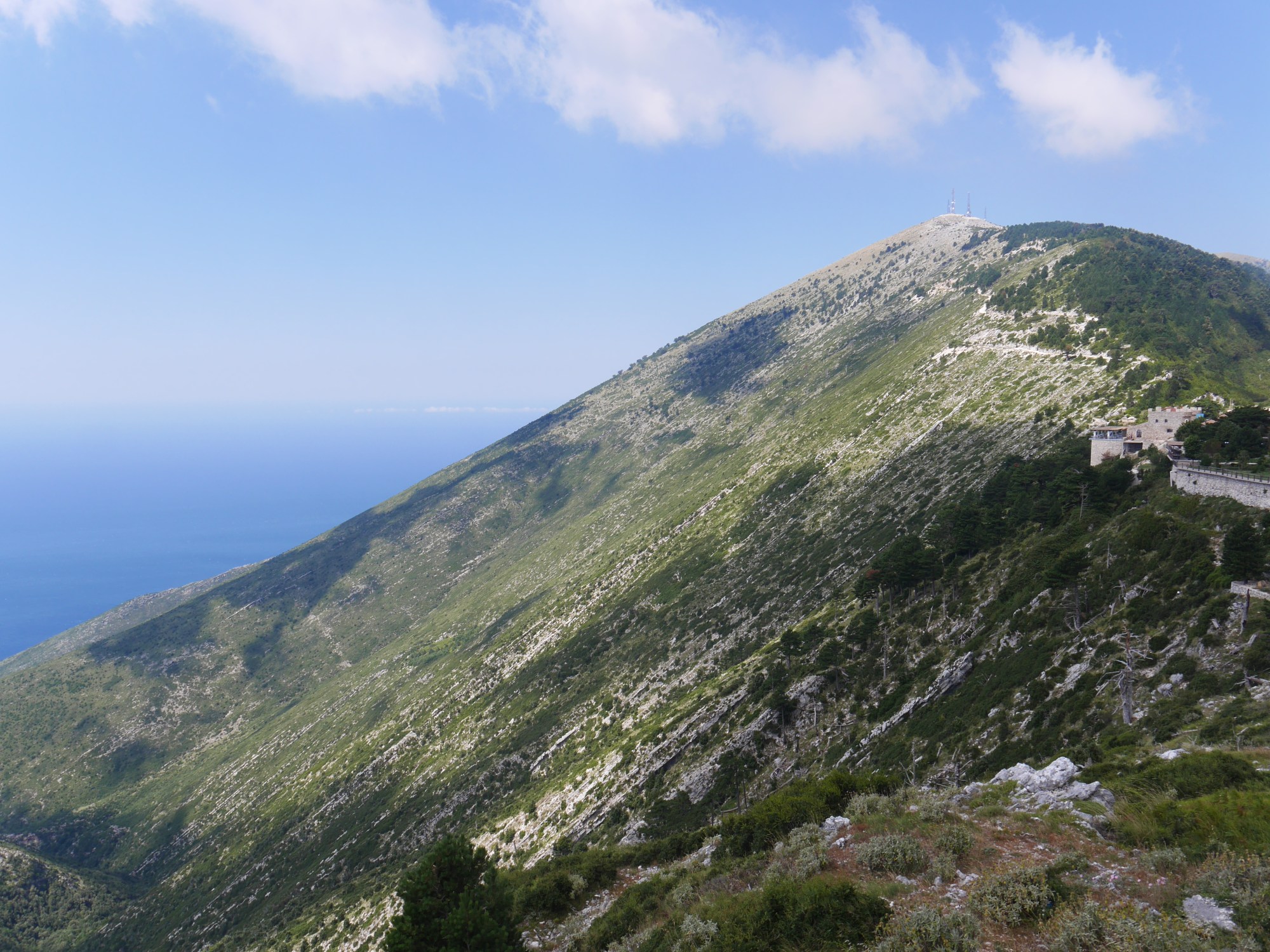 Continuing in the car we reached the top of the pass and stopped for spectacularly sheer views down to the Adriatic. In the heat haze we are sure we could just about make out the coast of Italy.