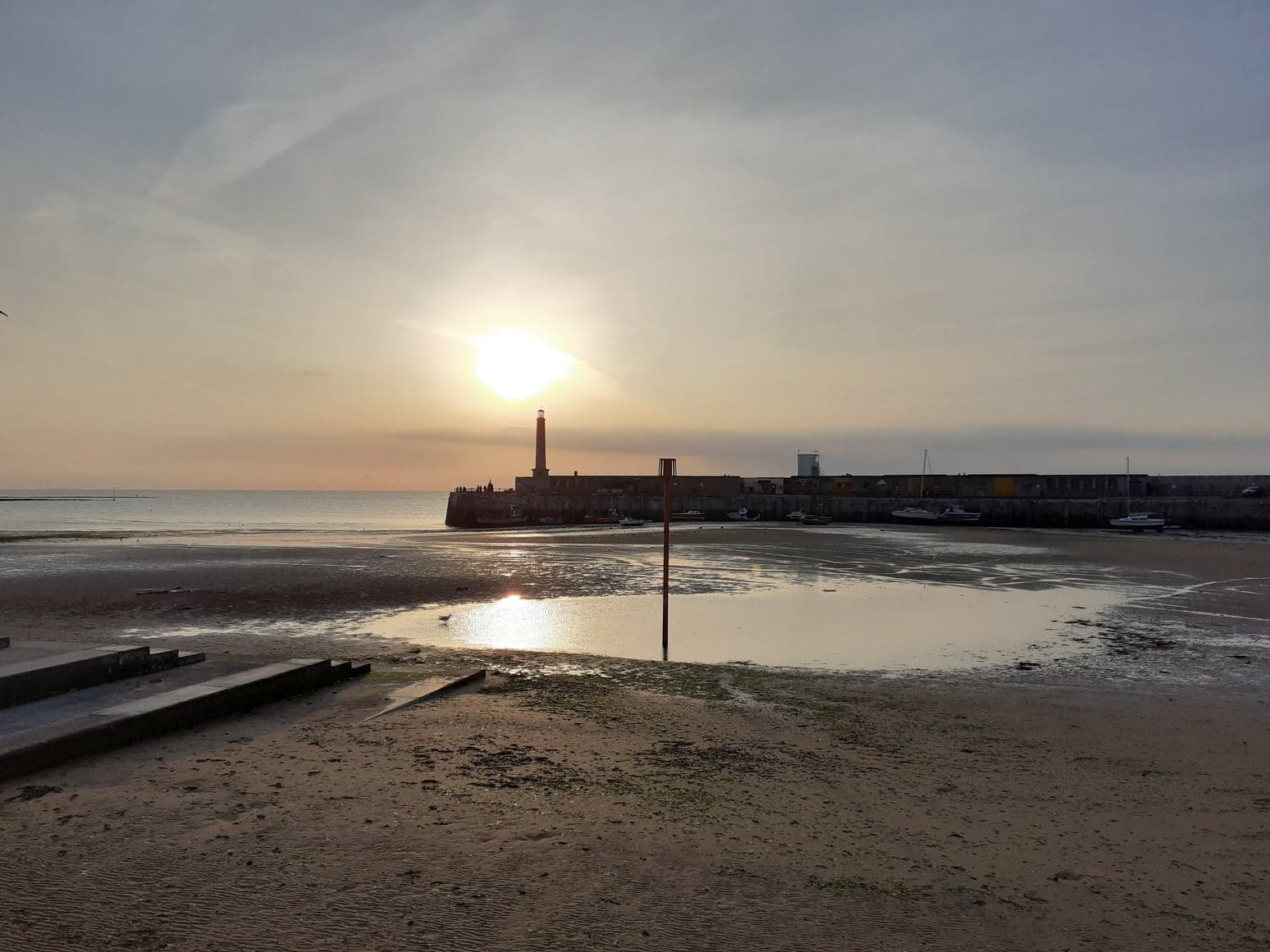 We have such fond memories of stopping in the harbour with Pintail. It was the second stop on our delivery trip when we first bought her back in 2014 and it was the safe harbour in which we survived Storm Katie in 2016. It is also memorable as the harbour we entered in thick fog after a trip to Dunkerque in 2015 and where we collapsed exhausted after an unexpected 24 hour sail back from Dieppe later that year. We have certainly learnt a lot since then! Walking around the harbour wall to have our flask of coffee at the lighthouse looking out to the harbour entrance brought it all back.