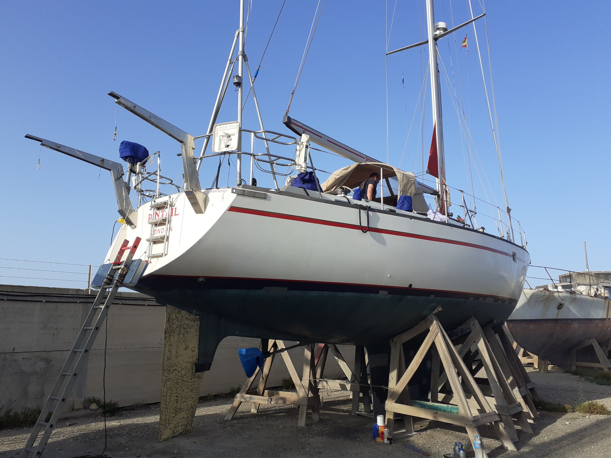 And it was brilliant to see her although she looked very forlorn, not to mention filthy after just over a year in the boat yard. I nearly wept when I saw the tender all deflated and yellowing from the sun.