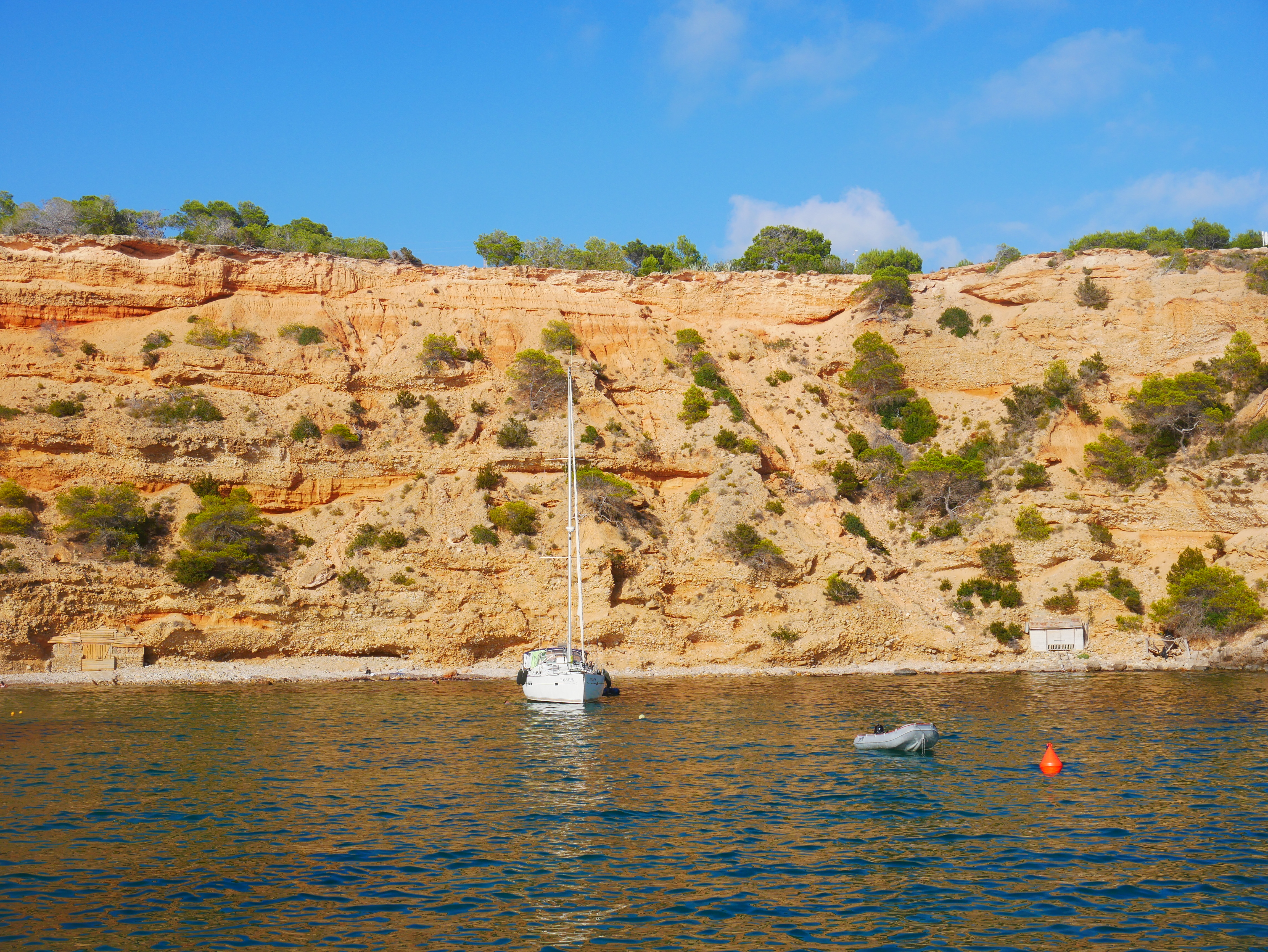 From our anchorage at Palmanova on Mallorca we identified a good window for sailing back to Ibiza where we planned to hang out some more before continuing west, us to Gibraltar, the Off Course crew towards Portugal and ultimately the Caribbean. In preparation we sailed round to Santa Ponsa again ready for the passage, taking in Mallorca’s spectacular landscape one last time (or who knows, maybe we’ll be back again sooner than we think!)