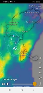 We had been so very lucky with the weather during our time at anchor but the forecast showed that this was coming to an end. A huge weather system out of the Gulf of Leon was on its way. It was due to hit Menorca and Mallorca hard but even in Formentera and Ibiza winds of 35 knots or more were forecast with accompanying thunderstorms. Formentera was going to offer no protection from the northerly winds so we decided to move back up to the southern Ibizan coast which offered great protection. The back of that weather system also offered a great opportunity to be blown all the way back to Almerimar so we decided to take it.