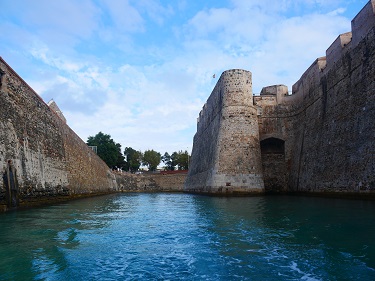 we were able to explore the city’s unique fortifications. This is one of those times when having a dinghy instead of a car comes into its own, giving us unique access to places others can only look down into. The sea filled moat between the Royal Walls gave us an invader’s eye view of the seemingly impregnable defences.