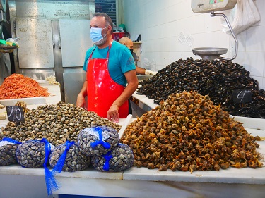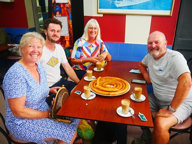 There is nothing like a trip to the market to get to know a place and Ceuta’s central market couldn’t have been closer to the boats. After picking up some groceries and fresh fish we joined the locals in the busiest and noisiest cafe inside the market for coffee and churros. My attempts at ordering in Spanish saw everyone receive decaffeinated coffee (sorry about that!) and when our enormous plate of curly doughnut appeared we seriously doubted we would ever get through it all. Yet somehow we managed it!