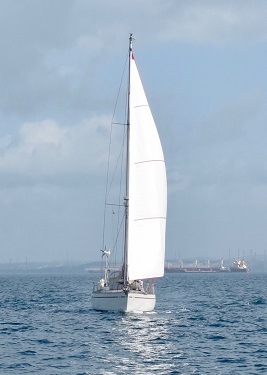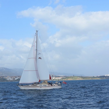 Pintail’s new heat exchanger had finally arrived from the UK and was swiftly installed by Stefan. Pintail was ready to leave even if we weren’t. But that didn’t stop us heading out of the marina into the Bay on a blustery day for a sail in the company of Yvette and Derek and SV Delite
