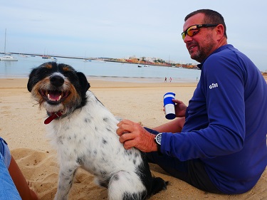 Instead we headed to our favourite beach at the anchorage on the Ferragudo side of the river. Our breakfast was gatecrashed by a very friendly local out for a walk.
