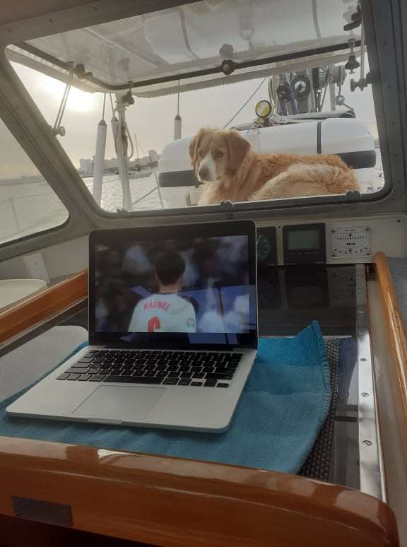 And while they waited we enjoyed yet another reunion and celebrated by taking Pintail and Momentum out for a sail together along the coast to watch the GC32 Lagos Cup. There we watched some far crazier sailors than us get thrown around in the air on these foiling catamarans.