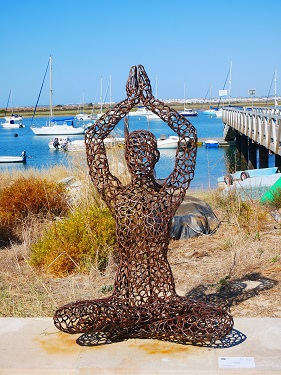 West of Portimão, just along the cliffs, we visited another of Stefan’s cycling haunts, the fishing town of Alvor. Here we watched the yachts at anchor tucked in amongst the sandbanks and wondered if we’d ever be brave enough to tackle the tides to make it inside.