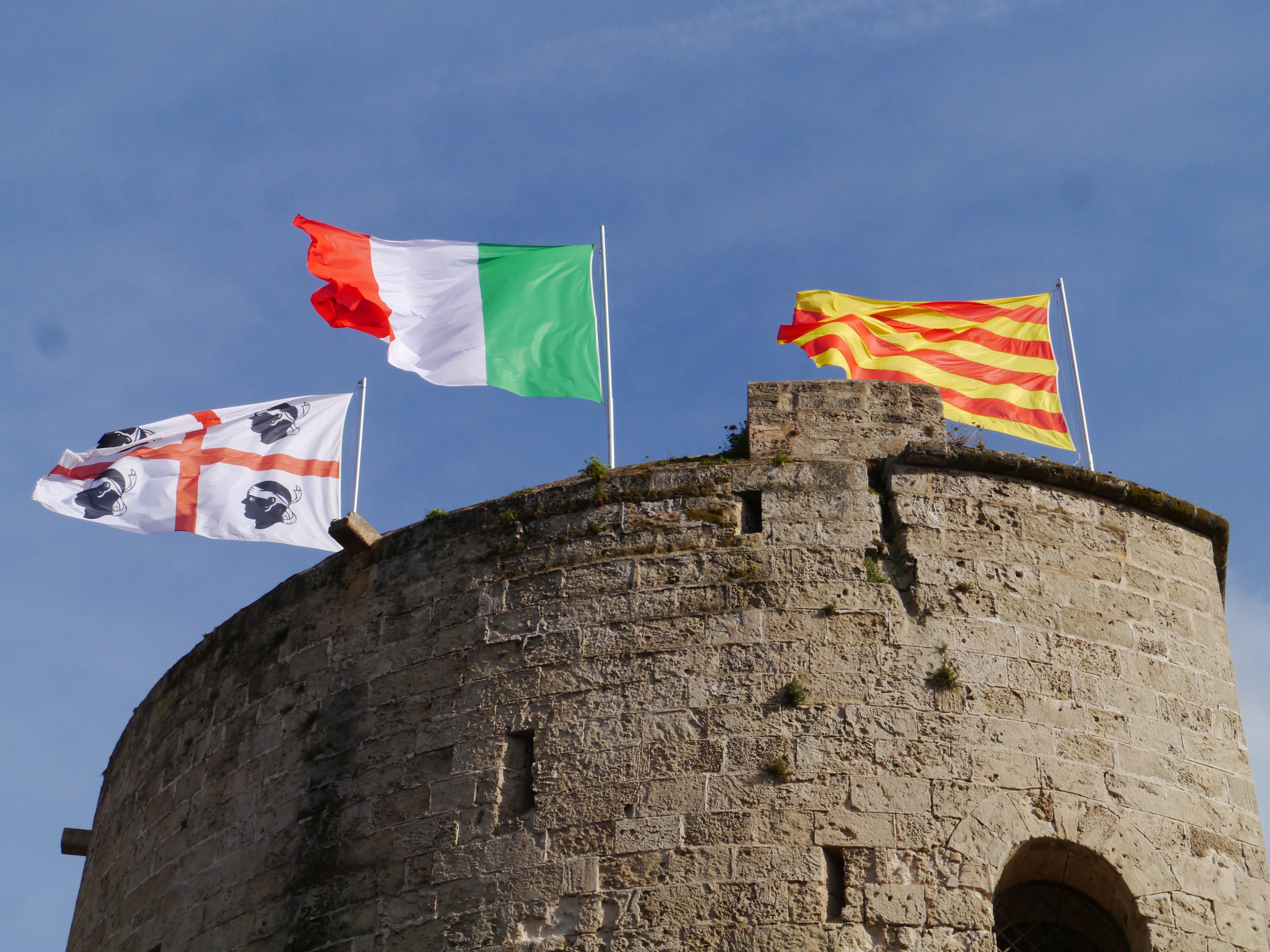 Arriving in Alghero on Sardinia, Italy we were confused to find the Catalan flags we thought we had left behind in the Spanish Balearic Islands flying everywhere and discovered that Sardinia had been part of Spain for four hundred years from 1323 to 1708 and that the Catalan language was still spoken in and around Alghero today. Evidence of a campaign against unification with Italy continues to this day on this island with its own very distinct identity.