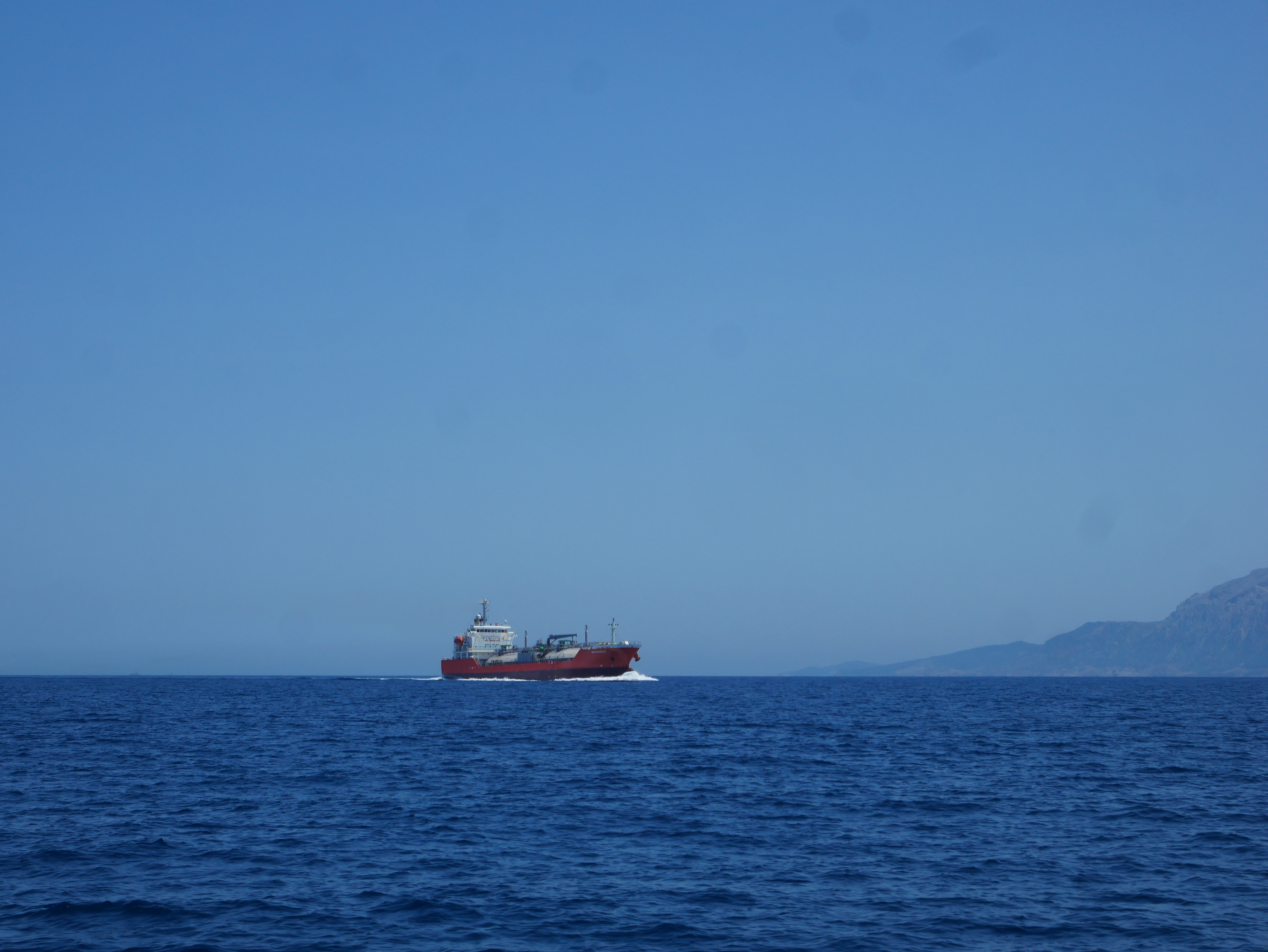 We had the best day sailing across the Strait. The weather was perfect as we dodged the enormous ships heading east and west. We suddenly realised that there was one slight problem with our plan. We had got rid of our very frayed Spanish courtesy flag when we left the Guardiana in April and, not thinking we’d be returning any time soon, hadn’t replaced it.