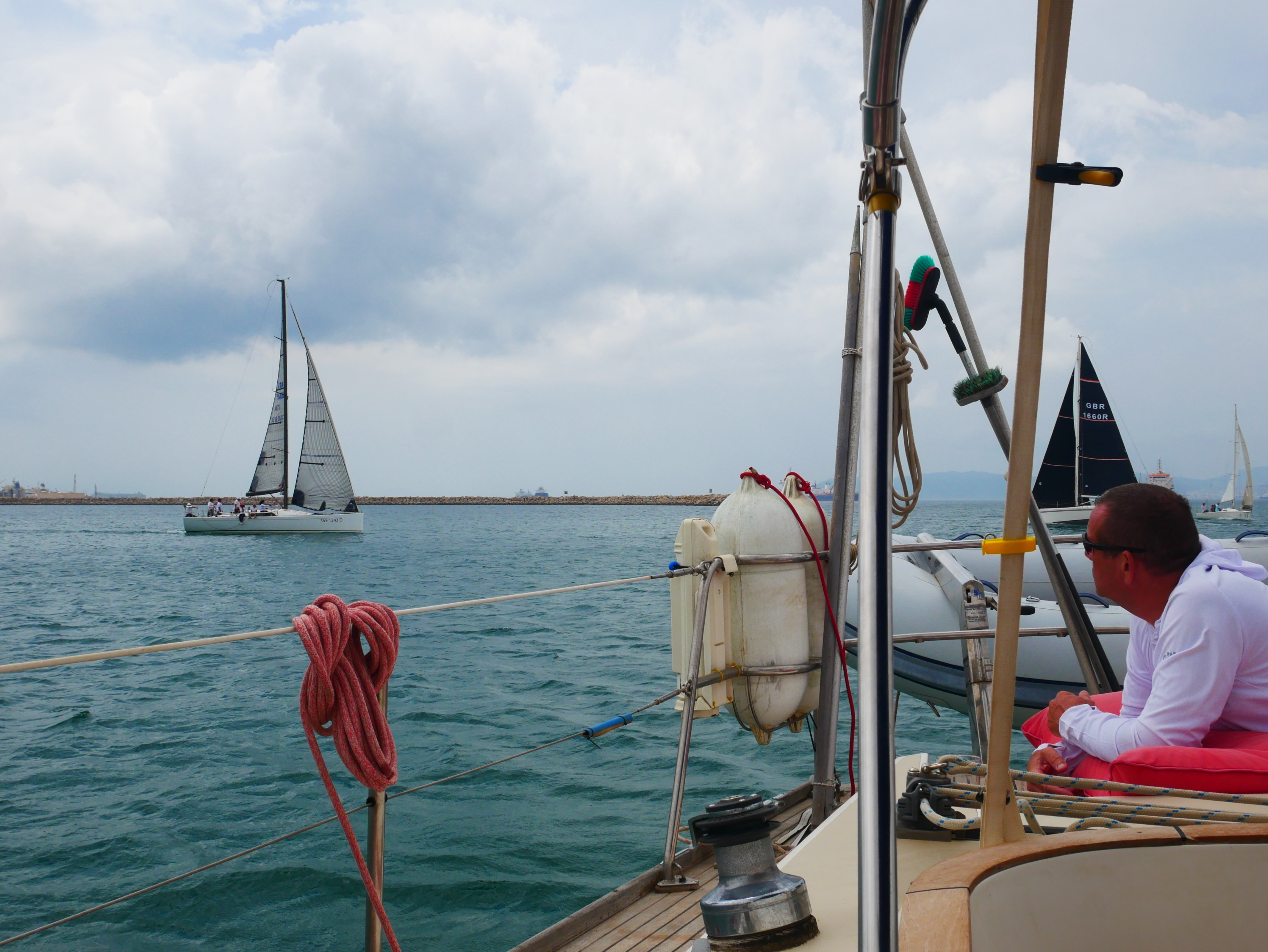 It was Saturday afternoon and we weren’t booked into Queensway Quay Marina until Monday so we anchored for a couple of nights in the anchorage at La Linea. We hoped to stay off the radar of the Guardia Civil who often patrolled the anchored boats because we wanted to avoid formally checking in to Spain. We needn’t have worried. The only vessels bothering us were some local yachts out of a race…