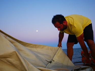 As a farewell treat, our pontoon neighbour Fernando took us out on his beautiful old wooden boat, which in a former life transported port wine from the Douro valley.