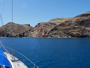 It may look lovely and calm but we endured a couple of really sleepless nights. Just as in Porto Santo, the katabatic winds roared down the cliffs sending us spinning around Pintail’s anchor. It was, however, a small price to pay for the privilege of staying somewhere so special.