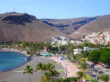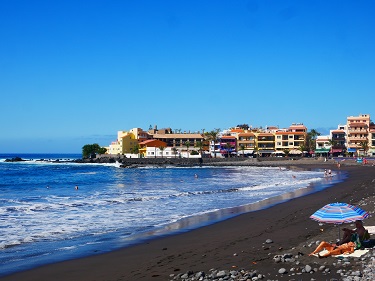 When we reached Valle Gran Rey we found a bustling seaside town fringed with a long beach of jet black sand