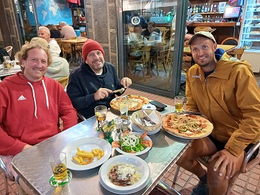 The day before our planned departure date, our fourth crew member, Ben, arrived. He had barely put his bags down from the airport than Stefan had put him to work fitting a new battery charger and checking his installation of the new batteries. There was then nothing left to do but check the weather forecast again and enjoy what was going to be our last meal on dry land for we didn’t know how long.