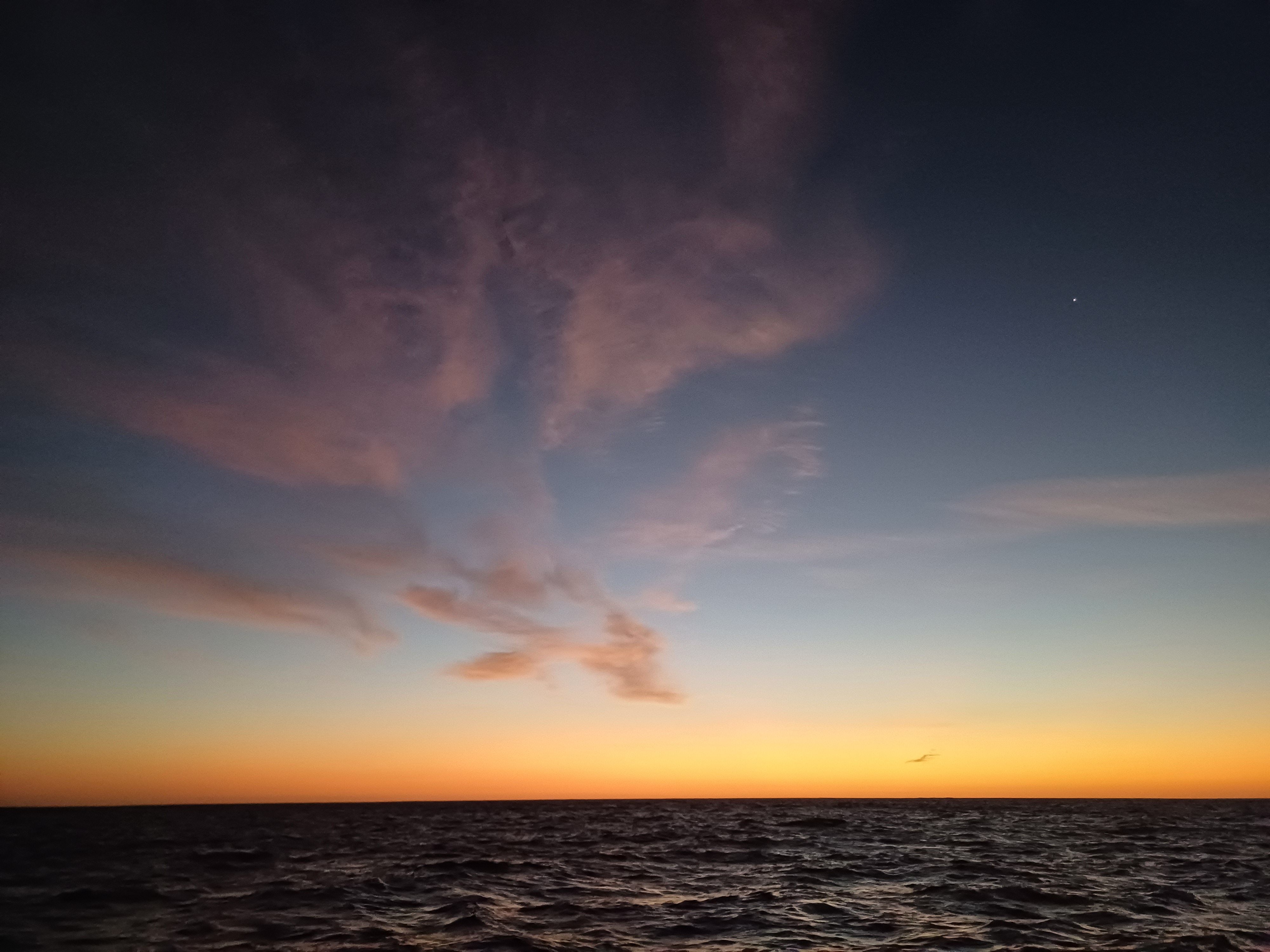 This watch was a contender for best night watch. It was dark, yes, especially when the moon disappeared altogether in the middle of our passage, but it was not too late to make us want to fall asleep and we had a nice long sleep to look forward to afterwards from midnight to 8am.