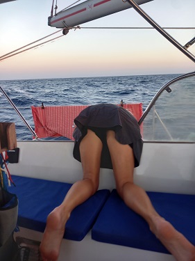 Our first three hour night watch started at 6pm. The Domestic got on with cooking dinner and sorting the rubbish which involved the indignity of reaching overboard from the cockpit to empty the organic waste into the sea!