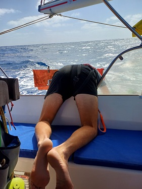 Other than these tasks, this was often the quietest time on board during the day. Leaving the watch in the cockpit to watch the big patches of seaweed pass by, the others might slink off for a snooze or some quiet time, reading or watching downloaded films or tv. Ben watched the entire seven series of Only Fools and Horses, including Christmas specials, during the passage.