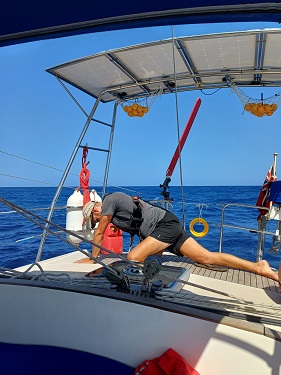 We decided on a mixed watch pattern – 2 hour watches during daylight hours and 3 hours at night. With the luxury of four of us on board, that meant just one dark watch every night. Every four days it also meant that one lucky crewmate got a full nine hours off at night. During the day we did slightly shorter watches but which still allowed for time off to rest, do chores, fix things or whatever we fancied. It worked really well for us.
