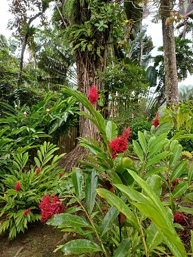 Indicated by a group of tourists from the visiting cruise ship, we easily found the bus stop for our next ride up into the hills outside Fort de France and to the Jardin de Balata. The cruise ship passengers were all smugly clutching tickets for the bus pre-purchased at a shop on the way to the stop. With the bus due imminently, we didn’t have time to get to the shop and back, so in my best French I asked a local, also waiting for the bus, if a ticket was necessary or could we get one on the bus. He confidently told me, no, its free on Sunday! Slightly confused we got on the (this time) very punctual bus and the driver just merrily waved us on without paying. A small net gain to our travel costs already dented by an expensive taxi this far!