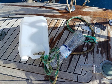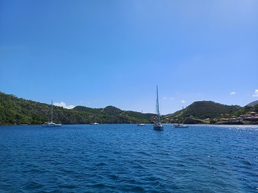 Our holiday in the marina was over and when we got some favourable but light wind we left to return to Deshaies, by boat this time. We had some drama on the way. After years of managing to avoid getting caught up in the fishing pots of Europe, we heard a repeated clunking sound on the hull. In thankfully very calm conditions we were able to stop the boat so Stefan could get in the water to release the rope and recycled buoys.
