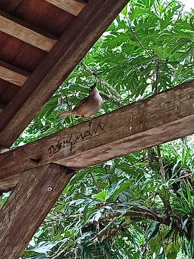 We continued back down the mountains, through the lush landscape, to the west coast of the island and then turned north to head to the top. Just outside our planned stop at the town of Deshaies, we saw a sign to a botanical garden. Never known to turn down an opportunity of some gardens, we made an unscheduled stop.