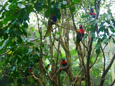 and lots of brightly coloured birds.