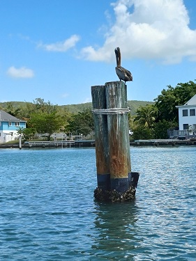 Stefan disappeared to check us in at customs and immigration and returned about an hour later declaring the officials, contrary to reports, to be the friendliest and most efficient he had encountered so far and better still their dinghy dock was the best yet. Even the pelicans were welcoming!
