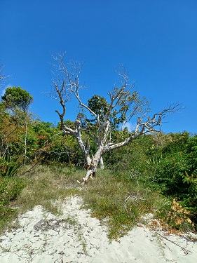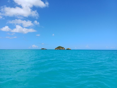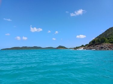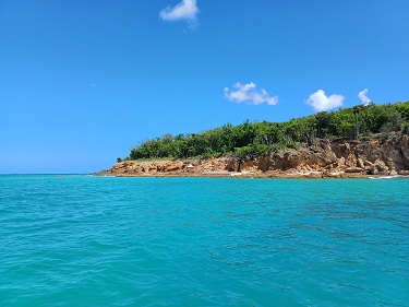 We enjoyed a restful couple of days off Green Island. We were completely protected from the wind by the island and from the waves by a long reef coming out from it. We couldn’t go very far. We could only land the dinghy on the beach and walk along the sand. The interior was guarded by thick scrub. Mostly we just swam, snorkeled and watched the turtles.