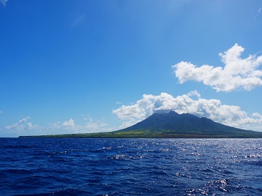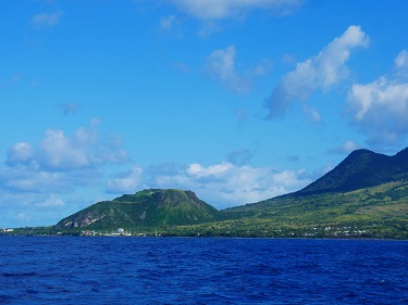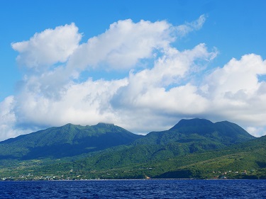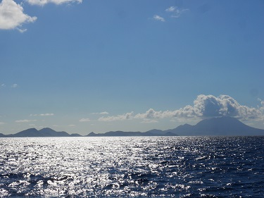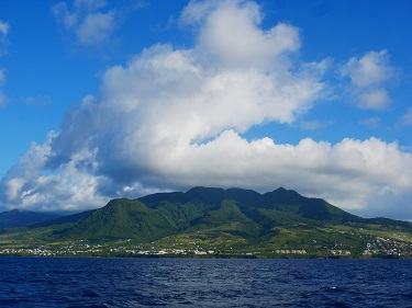 We left Antigua with a big dark cloud above it at dawn and soon the island of Monserrat was just about visible to port. It is possible to anchor in the north of Monserrat but following the eruption of its volcano in 1995 which destroyed its capital, Plymouth and caused the evacuation of most of the population. An exclusion zone still stretches across the southern end of the island and travel is therefore very restricted so we carried on towards St Kitts and Nevis.