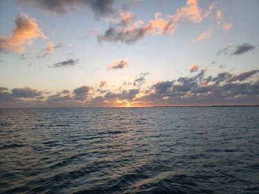 to West Bay, Conception Island, 23° 51′ 10″ N, 75° 7′ 30″W, 45nm, 8 hours 30 minutes