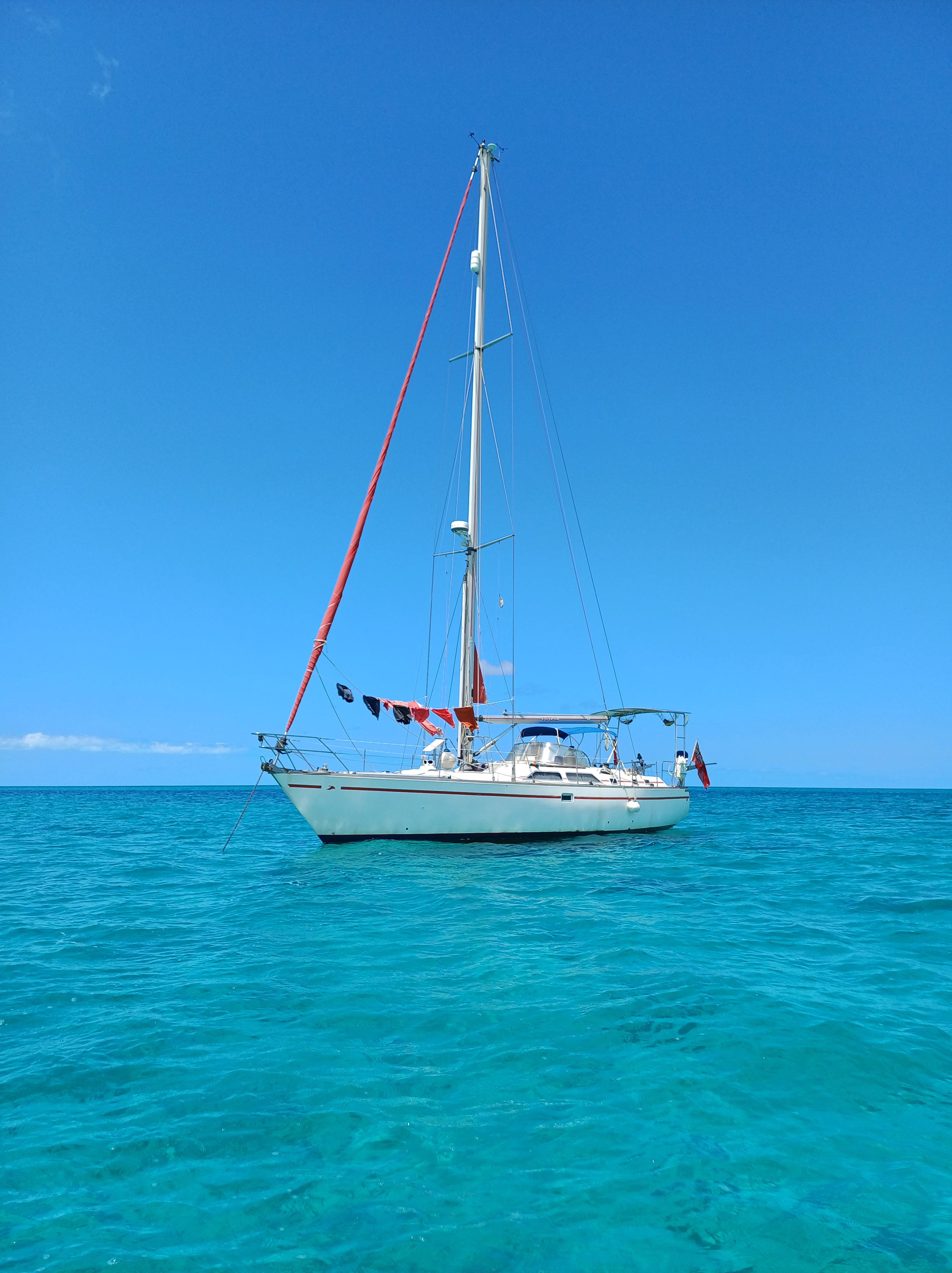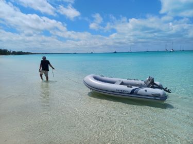 The excitement of the shark encounter over, we went back to tackling our other Bahamian nemesis, shallow water. Once safely through the Davis Channel, the water all the way to Pau Pau Bay was never more than 5 metres deep. Seeing the bottom so clearly was unnerving as we sailed at some speed towards the promise of food!