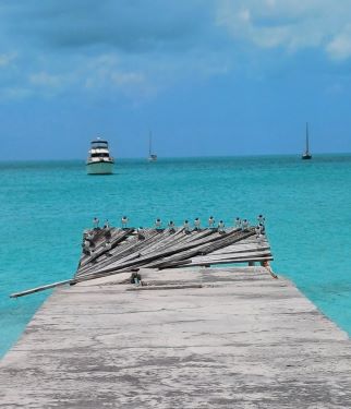 After a night at Alligator Point on the north end of the island, we crossed to tiny Half Moon Cay. This private island is owned by cruise company, Carnival, and every day a cruise ship disgorges its passengers onto the beach for the day. A meal in the pirate ship restaurant and horse-riding were amongst the activities on offer. It was fun to watch them from our place in the anchorage. They all left by 4pm and we had the island to ourselves. The water was so clear and tempting that I ignored the threat of sharks and took a dip. I figured I would be able to see them coming from a distance but didn’t go far from the boat all the same!