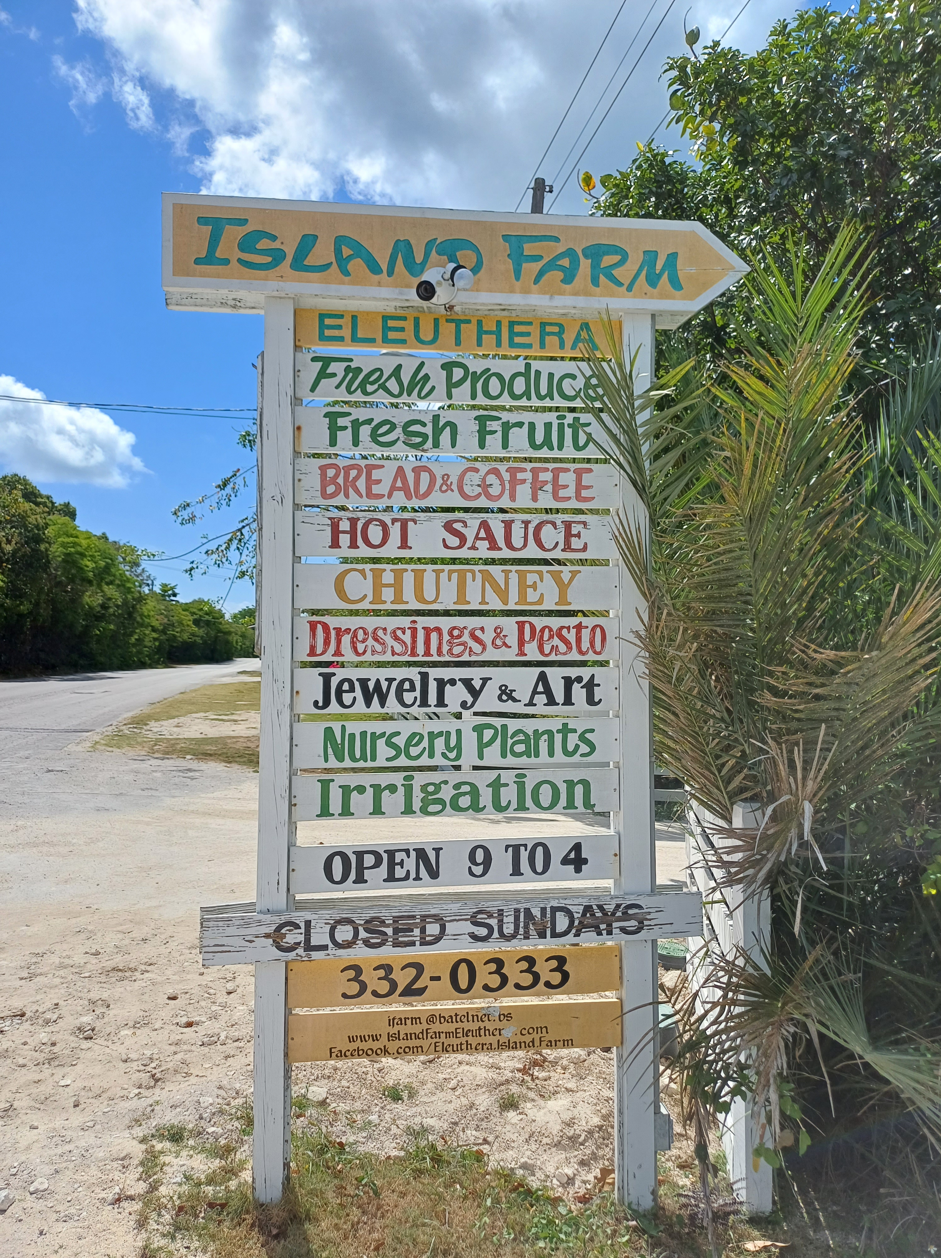 We walked to the main road which forms the backbone of Eleuthera and continued until a sign appeared – the farm shop was no myth
