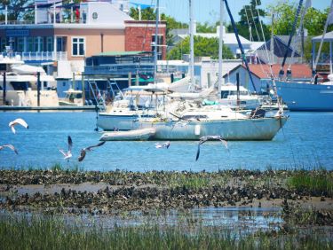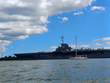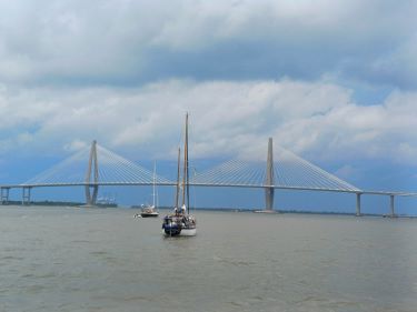 We anchored in the shadow of USS Yorktown, a former aircraft carrier now museum, just down from the Ravenel Bridge. It was nice and calm despite the strong current of the river and the thousands of little motor boats coming and going.