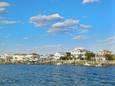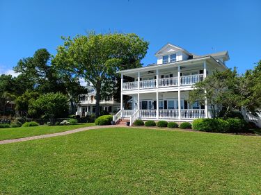 With a little help from the engine we arrived at bang on high tide and breezed through the entrance without any problems and round the long thin island where families were playing on the inside beach. Suddenly we were in a completely different place to oldy worldy Charleston. Here the waterfront was lined with multi million dollar homes with boats to match on their personal docks. Inside the island we found a wonderfully calm anchorage tucked in amongst all those houses.