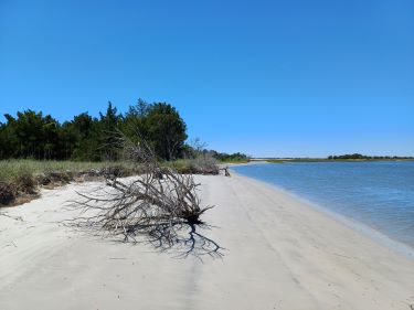 The town of Wrightsville is sandwiched between the ocean beach and the Inter-Coastal Waterway (ICW) which allows boats with shorter masts than Pintail’s to avoid open ocean passages. We took the dinghy up to the ICW to see what we were missing. It was like a busy motorway of motor boats running up and down. We weren’t sorry to be missing it. We also spotted our first Trump flag in this Republican leaning State.