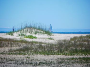 After an uneventful night and day navigating around Cape Fear (no sign of a psychopathic Robert de Niro!), we arrived at the inlet at Wrightsville Beach. The inlets on this coast are notorious for their shallow waters, shoaling and fierce currents so arriving at slack water at the top of the tide was a priority.