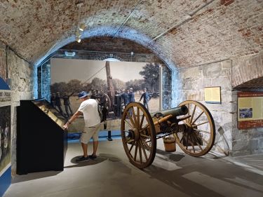 In the museum we were introduced for the first time to Jefferson Davis, President of the Confederacy during the Civil War, who after his capture had been imprisoned here and forced to wear irons around his ankles, taunted by a Union flag hung in his cell.