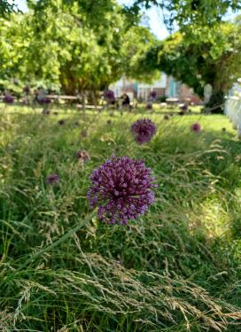 and learning about the Yorktown onion, a type of allium or wild garlic, that only grows here and is thought to have been brought over deliberately or accidentally by the colonists.