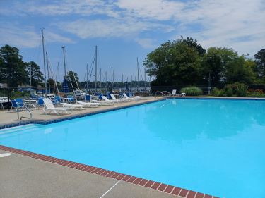 We could do little more than laze around and take a daily visit to the next door marina’s swimming pool where we would meet our new friends, Ann and Kim, who with their yacht SV Ilanda, were on the pontoon of the boatyard waiting to get their bowthruster fixed. One week turned into two, as they waited for their work to be completed and we didn’t feel very inclined to move on in the heat so we enjoyed breakfast, lunch and dinner together at all of Deltaville’s handful of eateries.