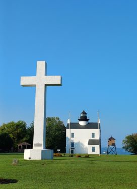 The Blackistone lighthouse was built in 1851 and had an automatic fog bell for when visibility was very low. Josephine Freeman was the lighthouse keeper there from 1875 until she died in 1912 and the lighthouse and the island was also home to her husband and four children. The intriguing 40 foot white cross we had seen from the river was erected in 1934 to mark the spot where in 1634 the first Catholic mass in the English speaking colonies had been celebrated, establishing the principle of religious freedom.