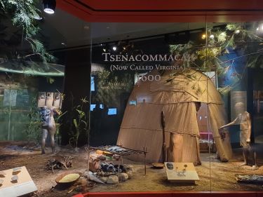 Before John Smith and the other first settlers arrived in the Chesapeake in 1607, Virginia was Tsenacommacah, the land of the Powatan people – a powerful political network of about 30 Native American tribes, led by Wahunsenacawh, father of the legendary Pocahontas. We were starting to learn a bit more about her but still had so many questions about her life – did she really have a relationship with John Smith at age 11 or did he make that all up after her death? Was she later kidnapped by the English settlers and forced to marry John Rolfe or living in their settlement voluntarily? Was the marriage politically useful to the Powatan?