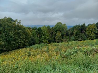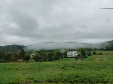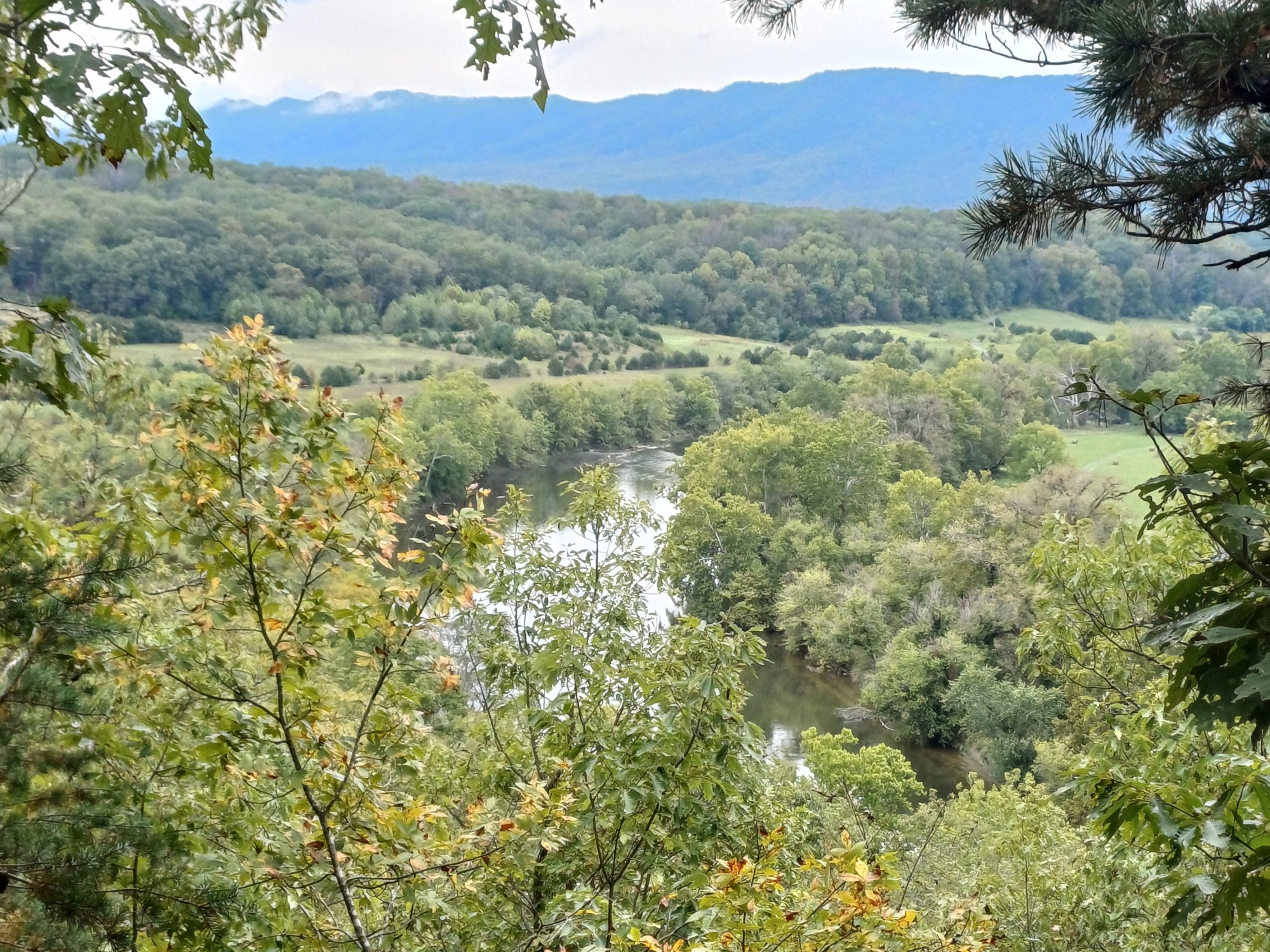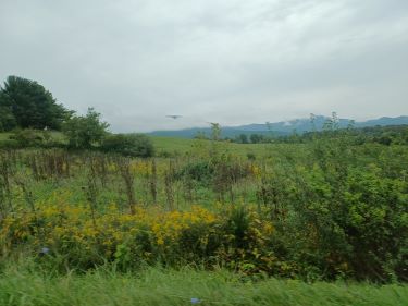 From the valley floor, across the farmland, we could see the Blue Ridge Mountains we had descended peeking out of the cloud.