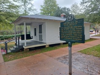 Leaving Starkville, we were heading to Tennessee and the capital of country music, Nashville but before leaving Mississippi we couldn’t not pay our respects to perhaps the State’s most famous son, Elvis Presley. In the drizzle we stopped in Tupelo at the tiny house in which he was born and which was his home for his early years. These narrow houses, common in the South, with rooms lined one behind the other, are known as shotgun shacks because it is said that you can shoot a shotgun through the front door and the bullet will go straight through and out the back door.